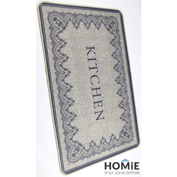שטיח גומי למטבח רטרו מודרני פרחוני KITCHEN טבעי שחור דגם קוויבק 42