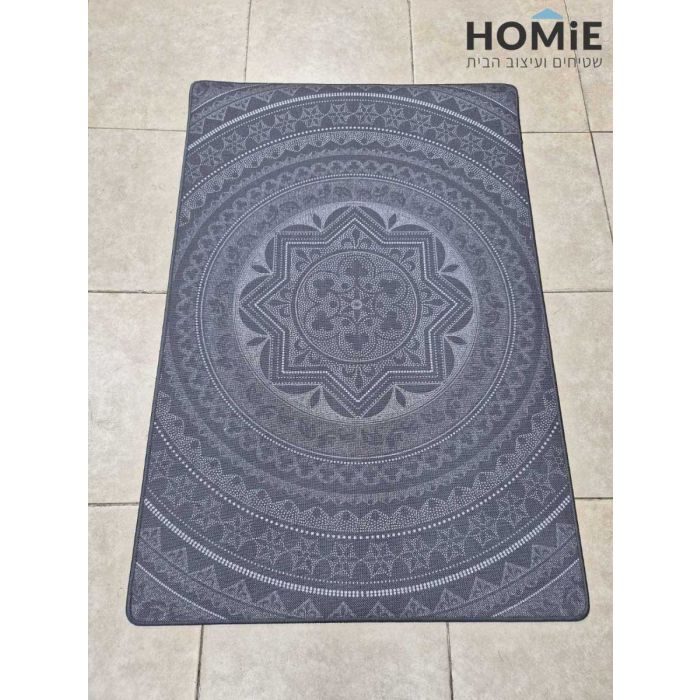 שטיח גומי למטבח וינטג' דקורטיבי גיאומטרי מנדלה אפור כהה דגם מדריד 27