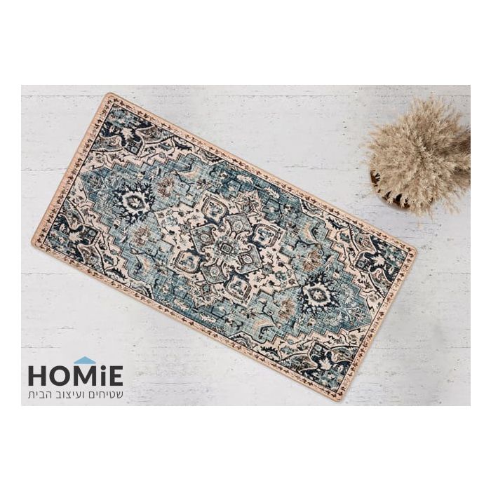 שטיח גומי למטבח וינטג' קלאסי מדליון טורקיז בז' דגם מדריד 38