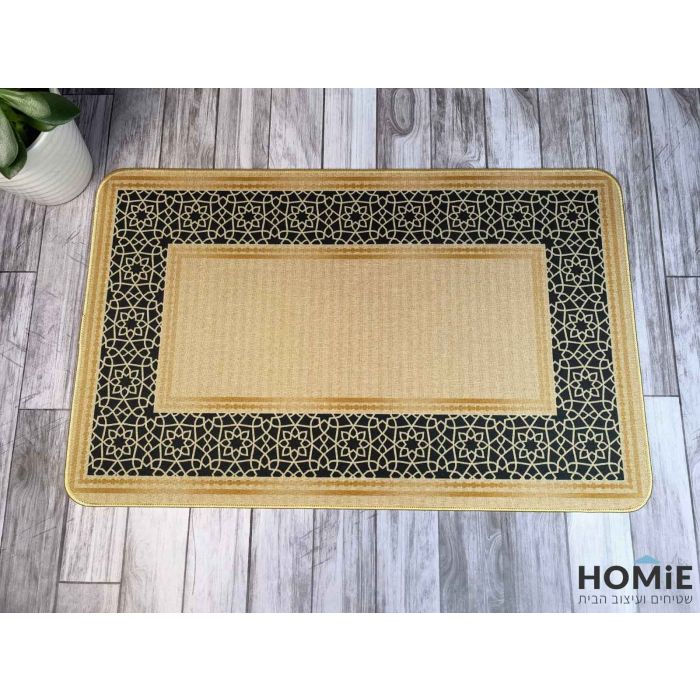 שטיח גומי למטבח דקורטיבי מסגרת עיטורי רטרו בז' שחור דגם קוויבק 07