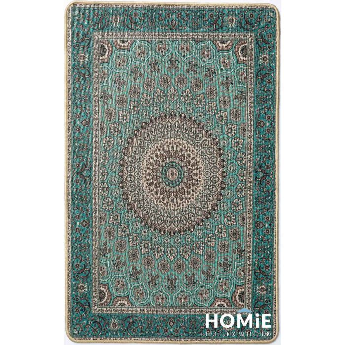 שטיח גומי למטבח וינטג' מודרני מנדלה טורקיז בז' דגם קוויבק 35