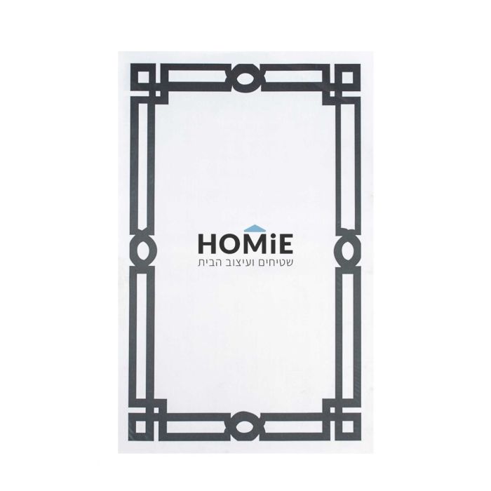 שטיח גומי למטבח וינטג' קלאסי גיאומטרי מסגרת אוף וויט אפור דגם קוויבק 48