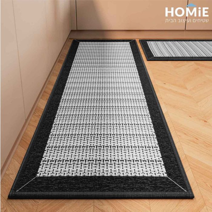 שטיח מודרני למטבח ג'קארד שניל שחור דגם לאונרדו 03