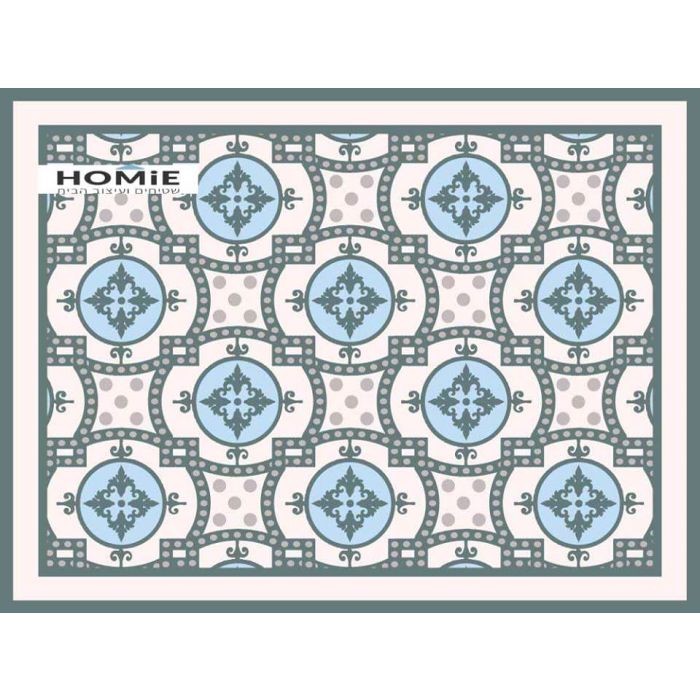 שטיח ויניל איכותי ודקורטיבי למטבח פי וי סי (PVC) לינולאום בהדפסה איכותית עם שכבה נגד החלקה דגם פלאיה דל כרמן בצבע אפור ותכלת. השטיח ורסטילי, פרקטי, חזק וגמיש, קל מאוד לניקוי (עם מטלית לחה) ולייבוש. הוא מתיישב בצורה אופטימלית על הרצפה, אינו סופג מים ובעל עמידות גבוהה.