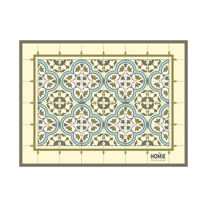 שטיח מטבח איכותי ודקורטיבי – דגם מרקש. שטיח PVC (לינולאום) מעוצב בהדפסה איכותית, בגווני אפור, תכלת וירוק זית. בעל שכבה נגד החלקה ליציבות מרבית, עמיד במיוחד, גמיש ונוח לשימוש. השטיח אינו סופג מים, מתיישב בצורה מושלמת על הרצפה וקל לניקוי – פשוט להעביר מטלית לחה והוא מוכן לשימוש מחדש. שילוב מושלם של פרקטיות, עמידות וסטייל במטבח שלך!