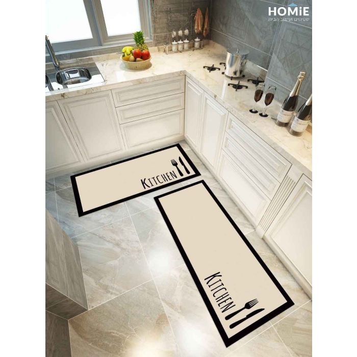 שטיח פי וי סי (לינולאום) מודרני למטבח Kitchen דגם קנדריק 07 בצבעי בז' ושחור. השטיח היוקרתי יתאים גם לשאר החללים בבית ומחוצה לו (חנות, משרד, אולם אירועים ועוד). השטיח מגיע עם כיתוב ואיור מדליקים שמשדרגים אותו בכמה רמות. השטיח מיוצר ברמות הגימור הגבוהות בעולם ובעל שכבה נגד החלקה המעניקה לו יציבות על הקרקע. בנוסף הוא חזק, עמיד במים, נעים למגע, פרקטי וקל מאוד לניקוי.