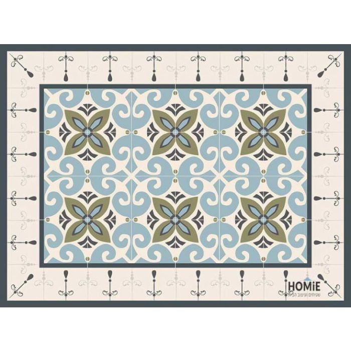 שטיח למטבח פי וי סי (PVC) תכלת ירוק דגם באסקי אפור