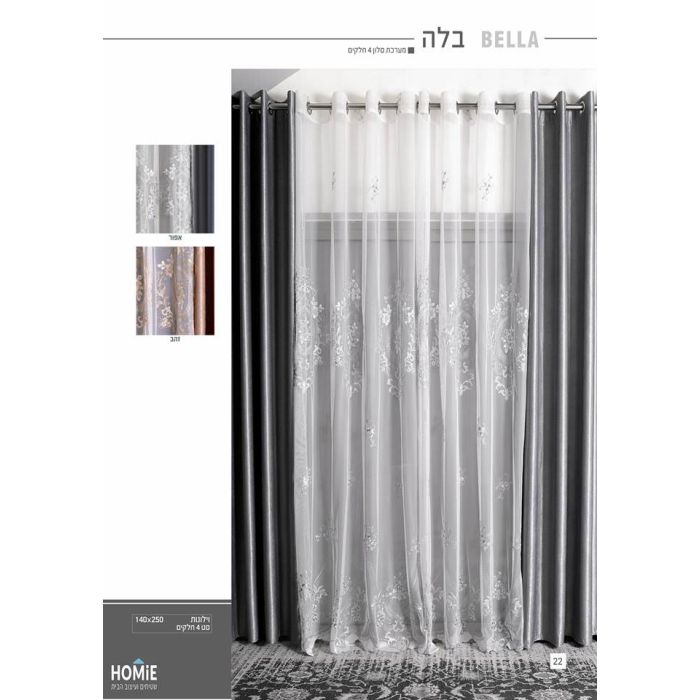 מערכת סלון דקורטיבית 4 חלקים יוקרתית לסלון, לחדר שינה ולשאר חלל הבית דגם בלה. הוילונות ישדרג לכם את מראה החלל ויכניסו המון סטייל לבית. בנוסף הם עמידים, נעימים למגע, פרקטיים וקלים מאוד לניקוי.