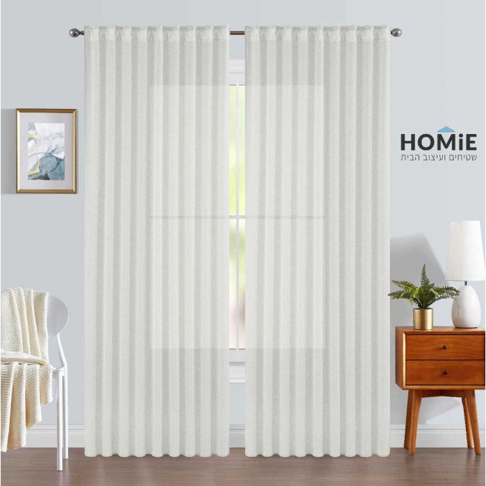 וילון קרפ השחלה דמוי פשתן חצי אטום לסלון ושאר הבית דגם פמלה
