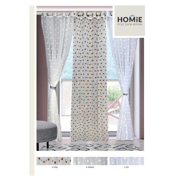 וילון מודרני דמוי פשתן חצי אטום מעוצב תבליטים לסלון ושאר הבית