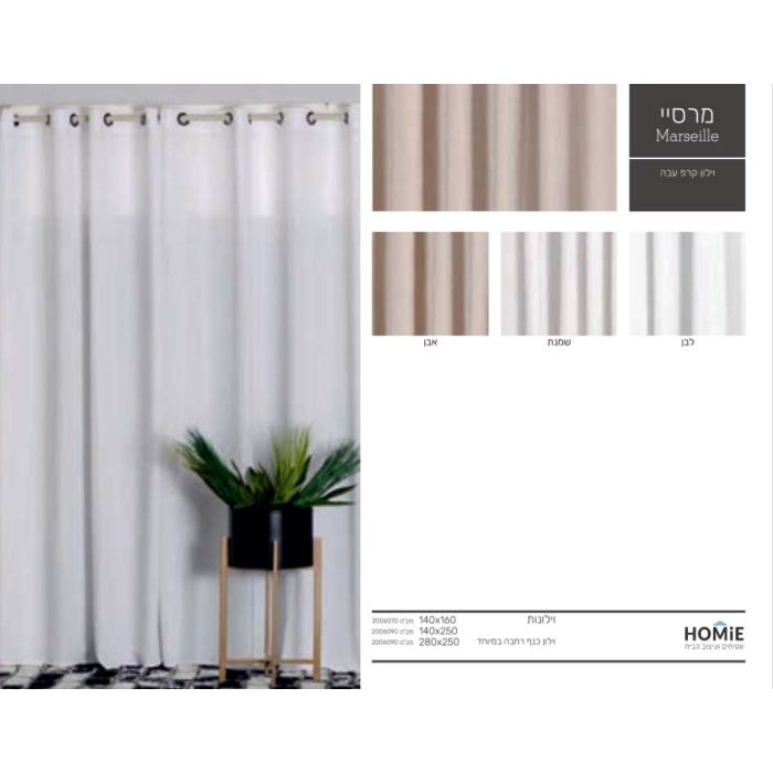 וילון קרפ עבה לסלון ושאר חלל הבית דגם מרסיי