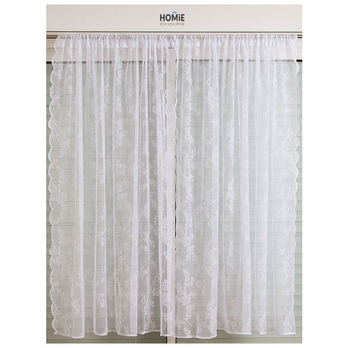 וילון השחלה פרחוני תחרה לבן לסלון ושאר הבית דגם מיקה