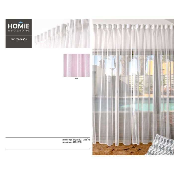 וילון השחלה רשת מודרני כפרי חצי שקוף לסלון ושאר חלל הבית דגם ליהי