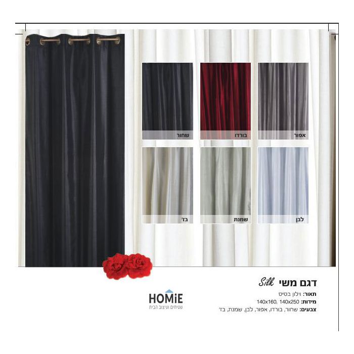 וילון סאטן חצי אטום מודרני לסלון ושאר חלל הבית דגם סילק