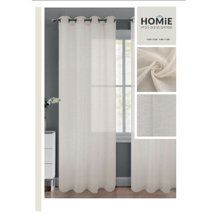 הוילון מגיע בשתי מידות סטנדרטיות פופולריות – 140x160 ס"מ ו-140x250 ס"מ – ומתאים לתלייה קלה על רינגים (טבעות), מה שמאפשר עיצוב מהיר וגמיש. החבילה כוללת שתי כנפיים ליצירת מראה מלא ואלגנטי בכל חלל.