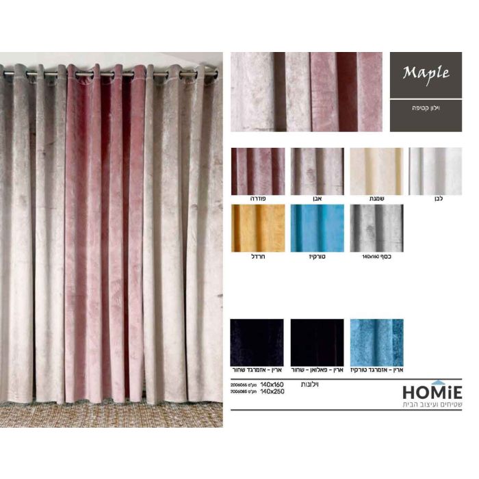 וילון קטיפה אטום חלק לסלון ושאר חלל הבית דגם מייפל