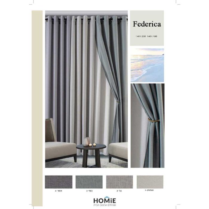 וילון אטום האפלה הצללה מודרני לסלון ושאר חלל הבית דגם פדריקה