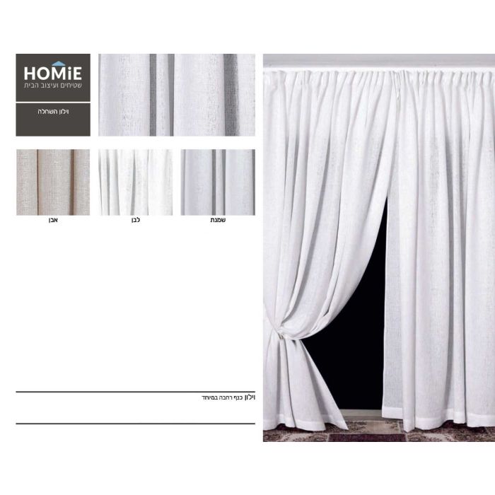 הבד נשפך בצורה רכה וזורמת, יוצר מראה אוורירי ומכניס תחושת קלילות, סטייל ואלגנטיות לחלל. מתאים במיוחד למי שמחפש וילון עם נוכחות רגועה ולא כבדה.