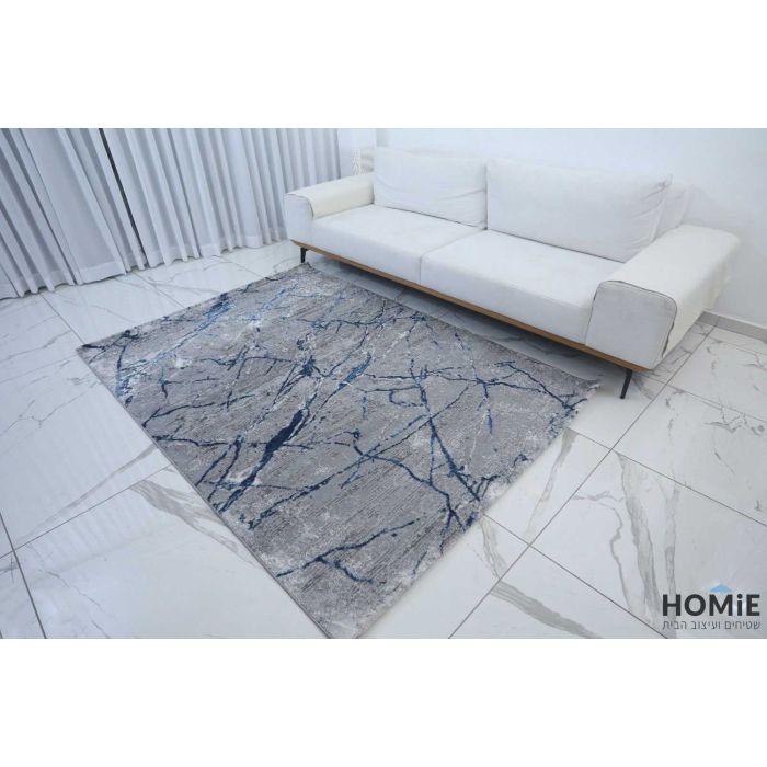 שטיח אבסטרקטי מודרני שיש אפור כחול דגם לורן 02