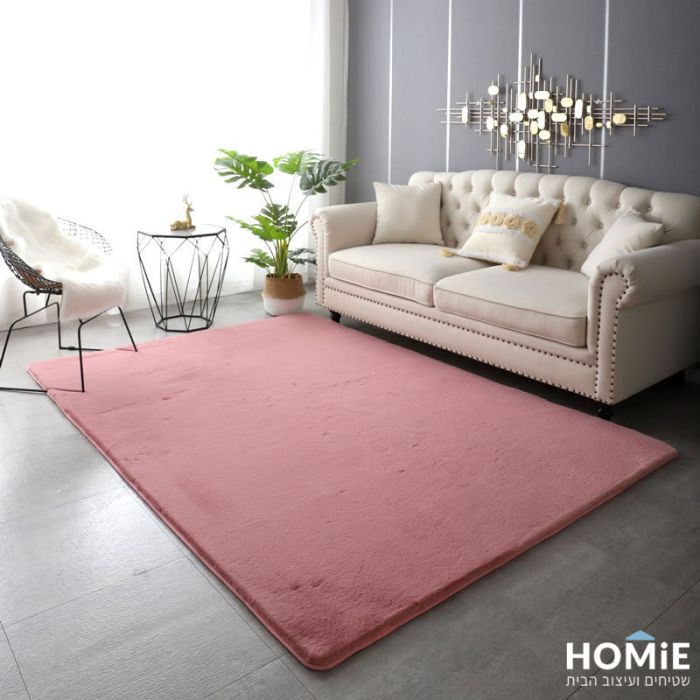שטיח פרווה מודרני כפרי ורוד פודרה דגם פיור | מלבן ועגול