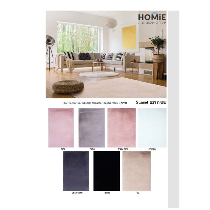 שטיח פרווה מודרני כפרי דגם סאנסט. השטיח היוקרתי והנפלא יתאים לסלון, חדר שינה, חדר ילדים ותינוקות, אמבטיה, מסדרון, חדר אורחים, חדר משחקים, פינת ישיבה, פינת אוכל, חדר עבודה, משרד, בית ספר וגן ילדים. השטיח מגיע בסגנון כפרי שיכניס המון חמימות לחלל בו הוא ימצא. תוסיפו לזה את מגע המשי המדהים ותקבלו פשוט שטיח מושלם. יתרונו האקוטי של השטיח: רב גוניות. לכן יתאים לחלל מודרני, קלאסי, וינטג', כפרי, בוהו שיק, נורדי-סקנדינבי ועוד. בנוסף הוא חזק, עמיד, עבה, צפוף, נעים למגע, יציב על הקרקע, פרקטי וקל לניקוי.