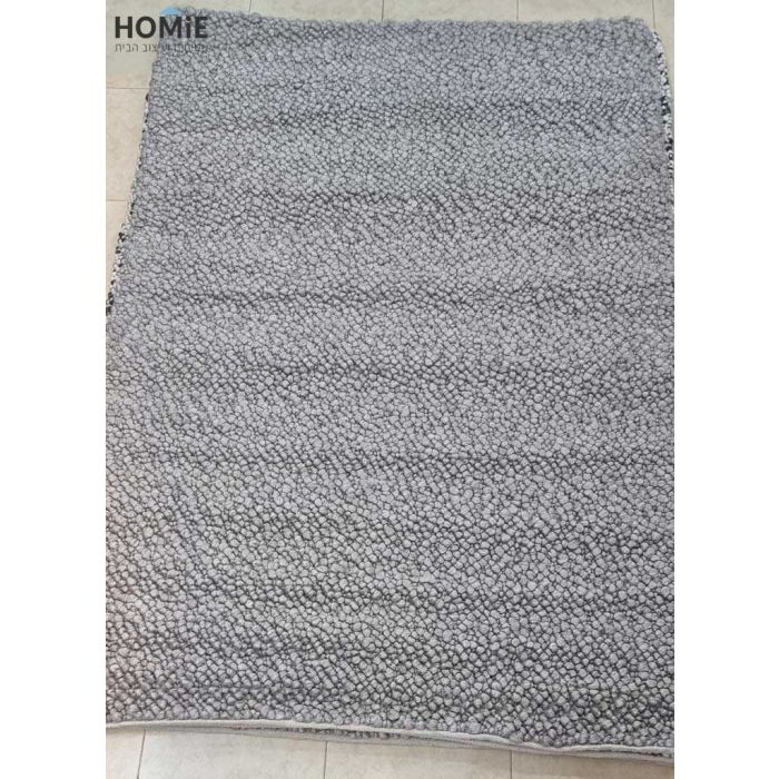 שטיח מודרני כפרי צמר עבודת יד פונפונים אפור דגם קמבה 03