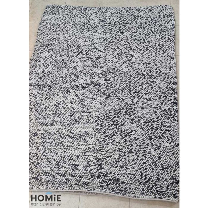 שטיח מודרני כפרי צמר עבודת יד פונפונים לבן שחור דגם קמבה 02