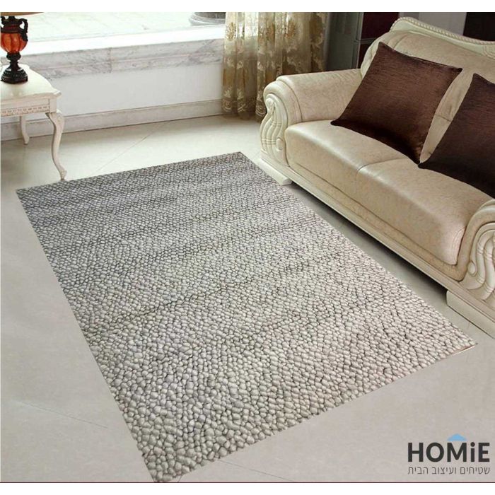 שטיח מודרני כפרי צמר עבודת יד פונפונים לבן דגם קמבה 01