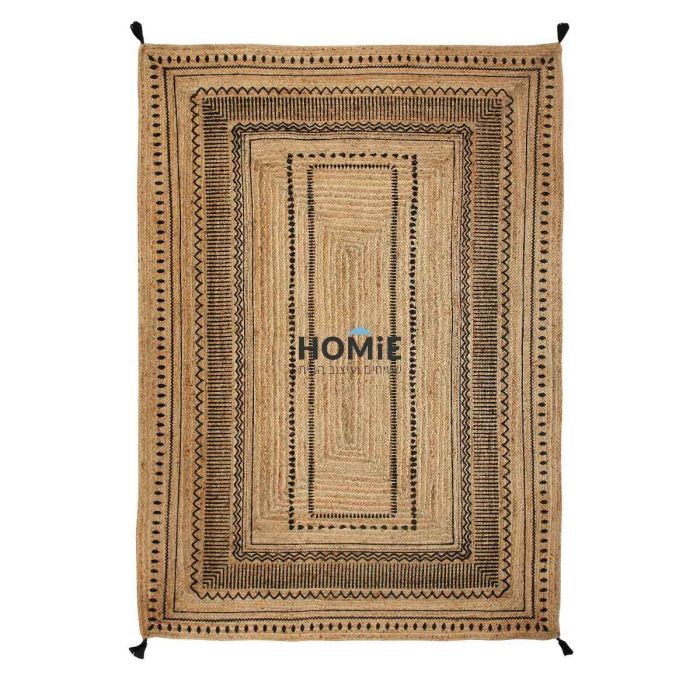 שטיח חבל (יוטה) טבעי גיאומטרי שבטי מלבנים מודרני עבודת יד דגם פורטו 01