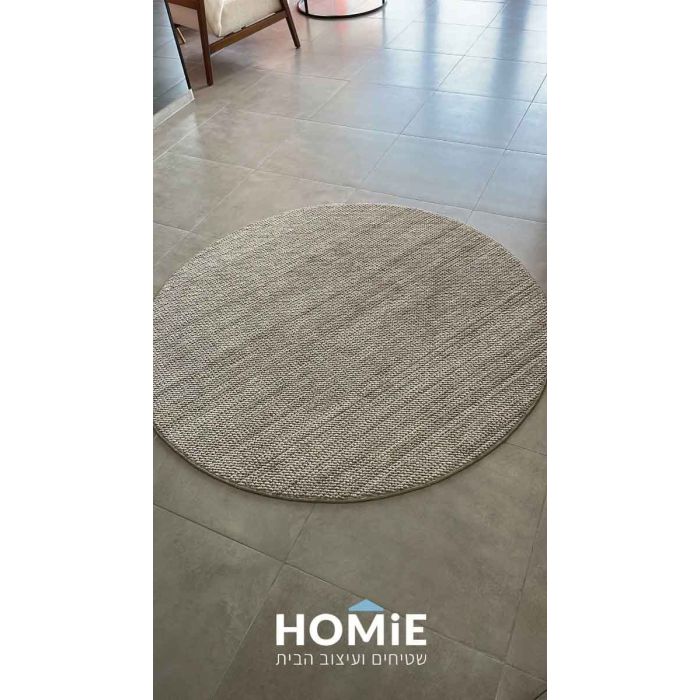 שטיח עגול כפרי מודרני חלק לולאות בז' כהה דגם שוודיה 09-1
