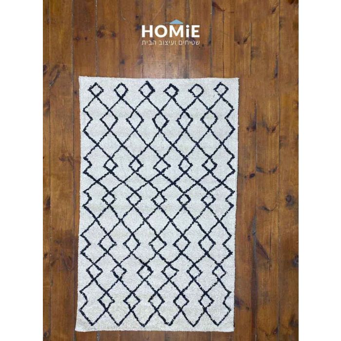 שטיח ברבר מרוקאי גיאומטרי מעויינים אוף וויט שחור דגם לפלנד 112