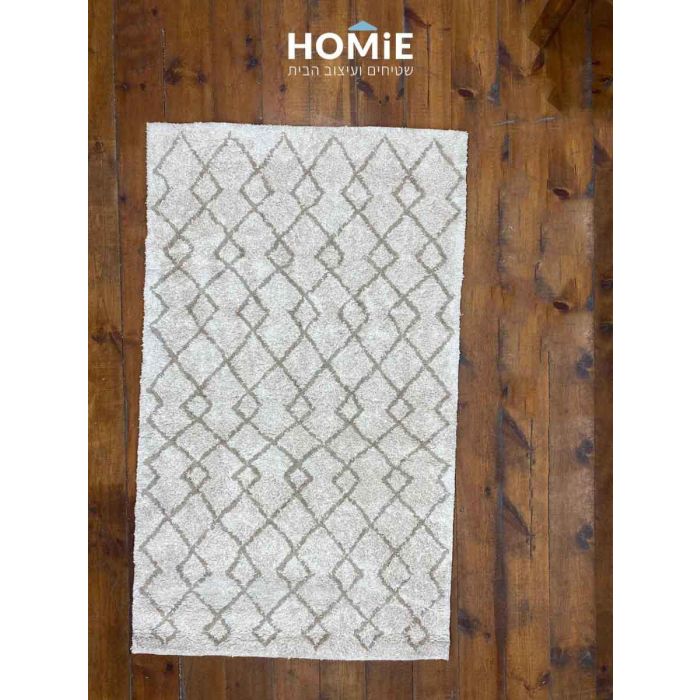 שטיח ברבר מרוקאי גיאומטרי מעויינים אוף וויט אפור דגם לפלנד 113