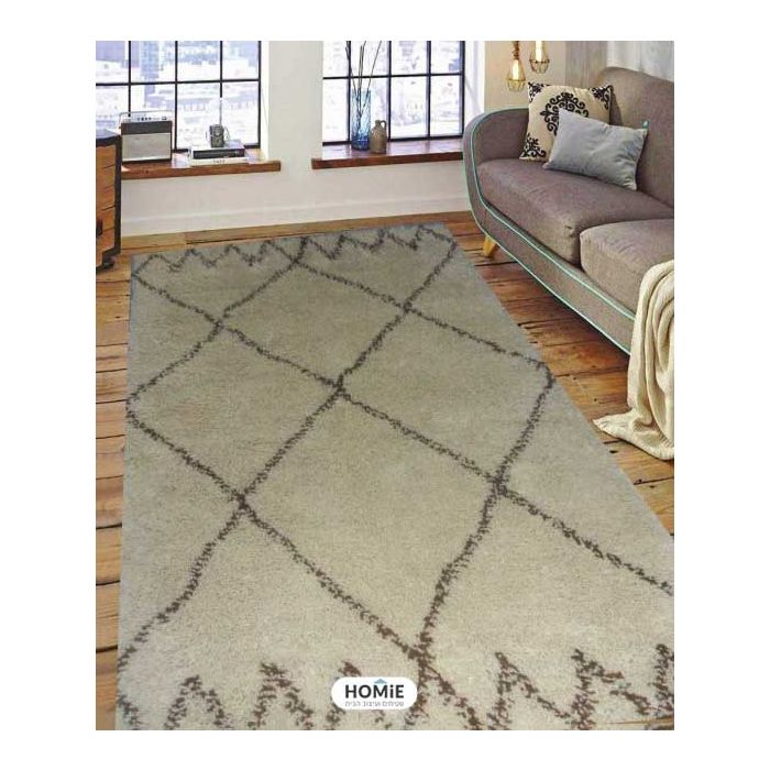 שטיח ברבר מרוקאי צמר עבודת יד מעויינים קרם בז' דגם טרויה 302
