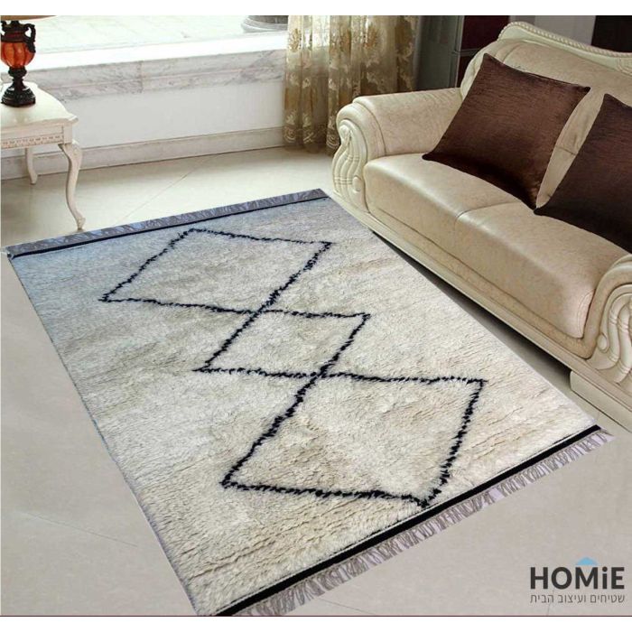 שטיח ברבר מרוקאי צמר עבודת יד אוף וויט שחור דגם מונטה קרלו 01