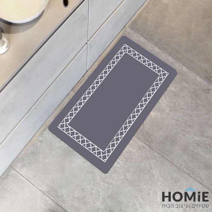 שטיח פי וי סי למטבח אפור לבן גיאומטרי מודרני דקורטיבי מסגרת דגם דרייק 02