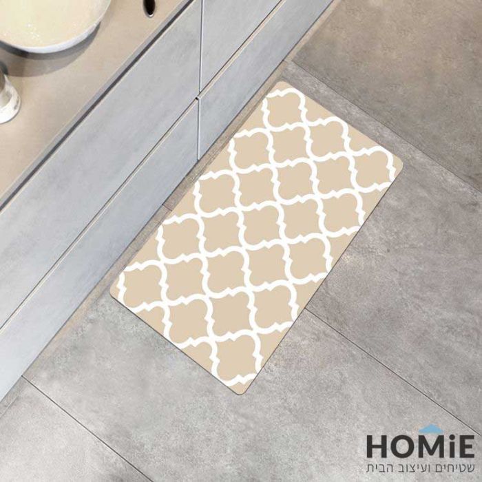 שטיח פי וי סי למטבח וינטג' מודרני גיאומטרי דקורטיבי מעויינים בז' לבן דגם דרייק 12