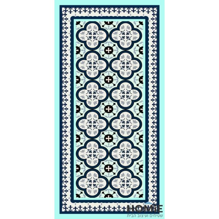 שטיח פי וי סי PVC (לינולאום) למטבח רטרו תכלת כחול דגם מנאלי 05