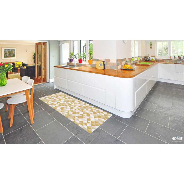 שטיח פי וי סי (PVC) חום בז' גיאומטרי דגם משולשים מנוגדים