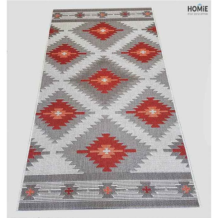 שטיח חבל גיאומטרי אתני מעויינים אפור אדום דגם וויסטלר 15/64