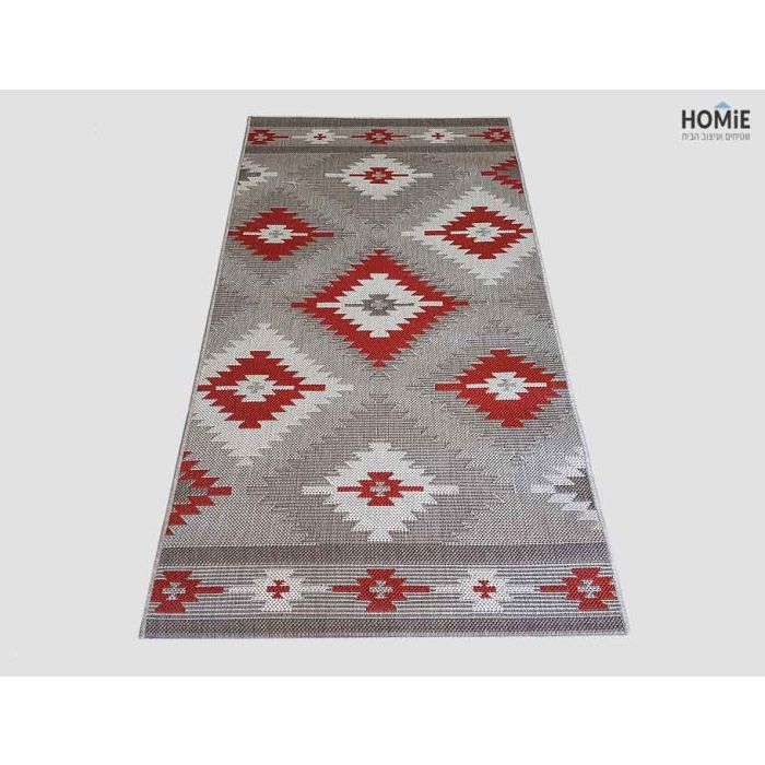 שטיח חבל גיאומטרי אתני מעויינים אפור אדום דגם וויסטלר 15/85