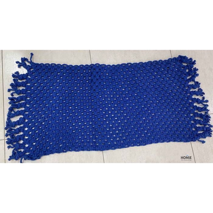 שטיח חבל קילים עבודת יד מודרני יוקרתי לסלון, לחדר שינה, לחדר ילדים, לאמבטיה, למסדרון, לפינת אוכל, למטבח, לגינה ולמשרד דגם סלבדור 08 בצבע כחול. שטיח המקרמה המיוחד בסגנון הכפרי עשוי 100% כותנה ונארג בעבודת יד ע"י אמן. הוא יכניס המון סטייל, נוכחות ויוקרה לחלל הבית ויתאים לכל סגנון. בנוסף הוא חזק, עמיד, צפוף, נעים למגע, פרקטי וקל מאוד לניקוי.