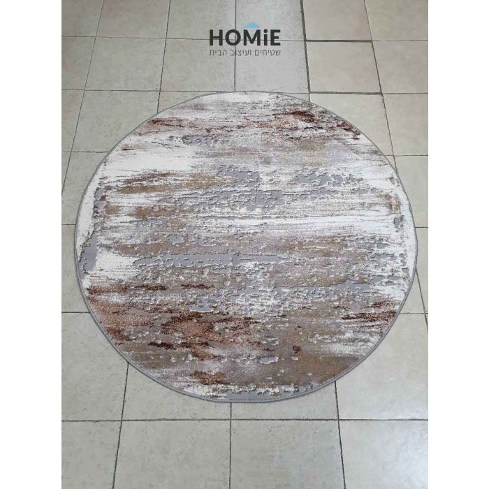 שטיח עגול אבסטרקטי חום אפור דגם אלכסנדרה 66/80