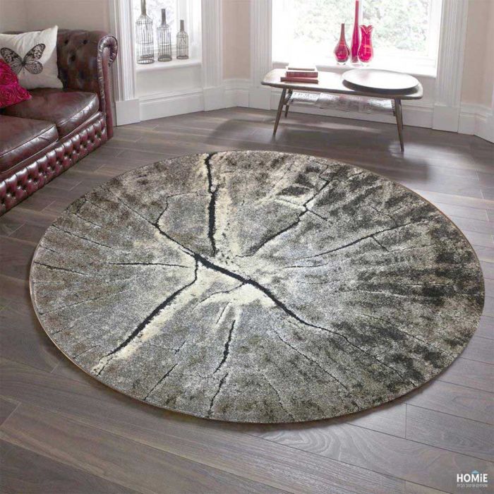 שטיח עגול אבסטרקטי רעידת אדמה אפור בז' דגם ברילוצ'ה 59A