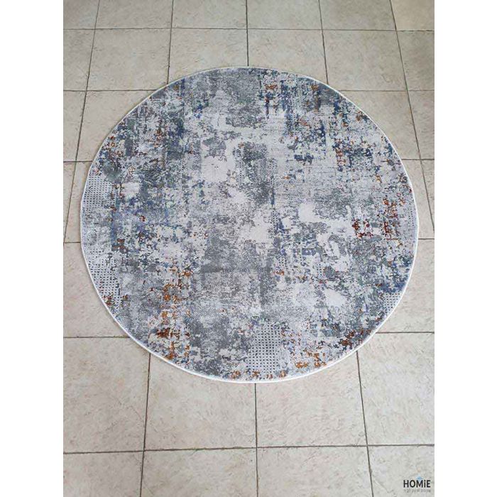 שטיח עגול אבסטרקטי אפור כחול כתום דגם קטרינה 65B