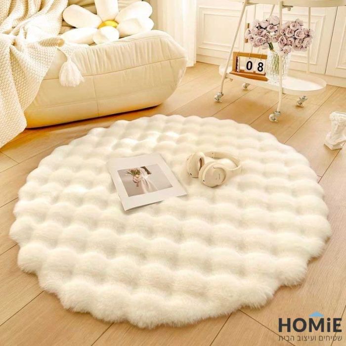 שטיח פרווה עגול כפרי מודרני דקורטיבי תבליטים שמנת דגם אנטונלה 04