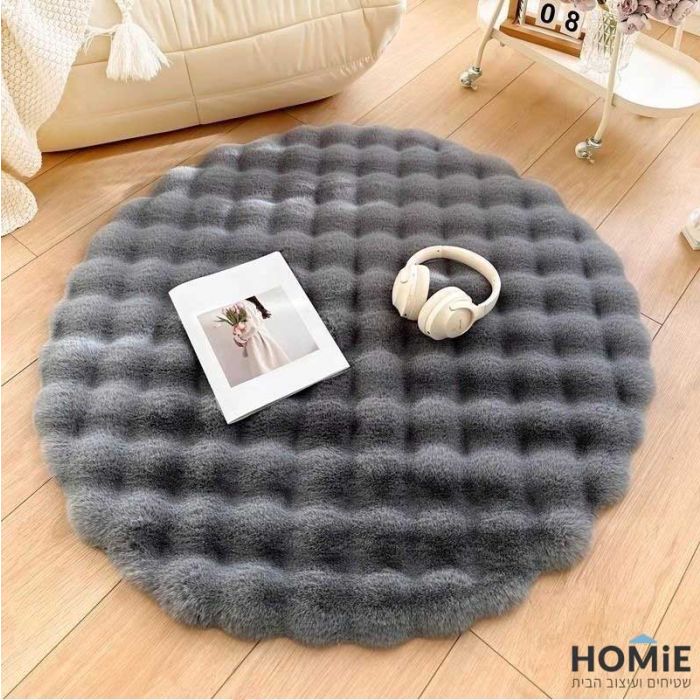 שטיח פרווה עגול כפרי מודרני דקורטיבי תבליטים אפור דגם אנטונלה 03