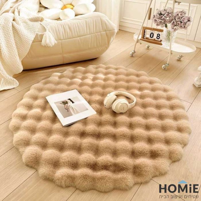 שטיח פרווה עגול כפרי מודרני דקורטיבי תבליטים מוקה דגם אנטונלה 05