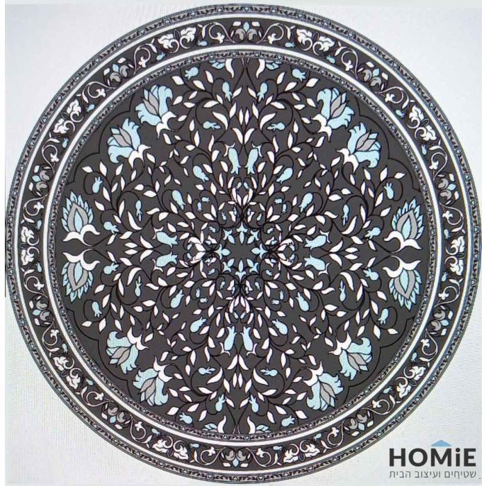שטיח גומי עגול למטבח וינטג' דקורטיבי מדליון פרחוני אפור תכלת דגם מדריד 10