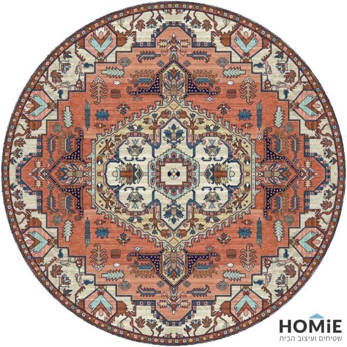 שטיח גומי עגול למטבח וינטג' קלאסי בריק מדליון דגם מדריד 43