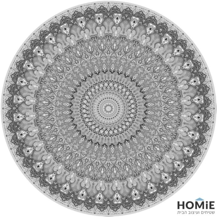 שטיח גומי עגול למטבח וינטג' מודרני מנדלה אפור דגם מדריד 46